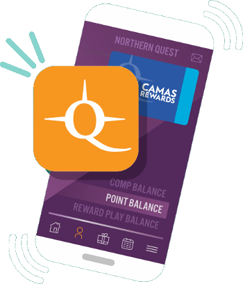 Download the free Northern Quest app from the Apple App Store or Android Google Play. Log in with your Camas Rewards number and PIN and be sure to turn on location and notifications in your device settings to be alerted when there are new promotions, special offers or events.